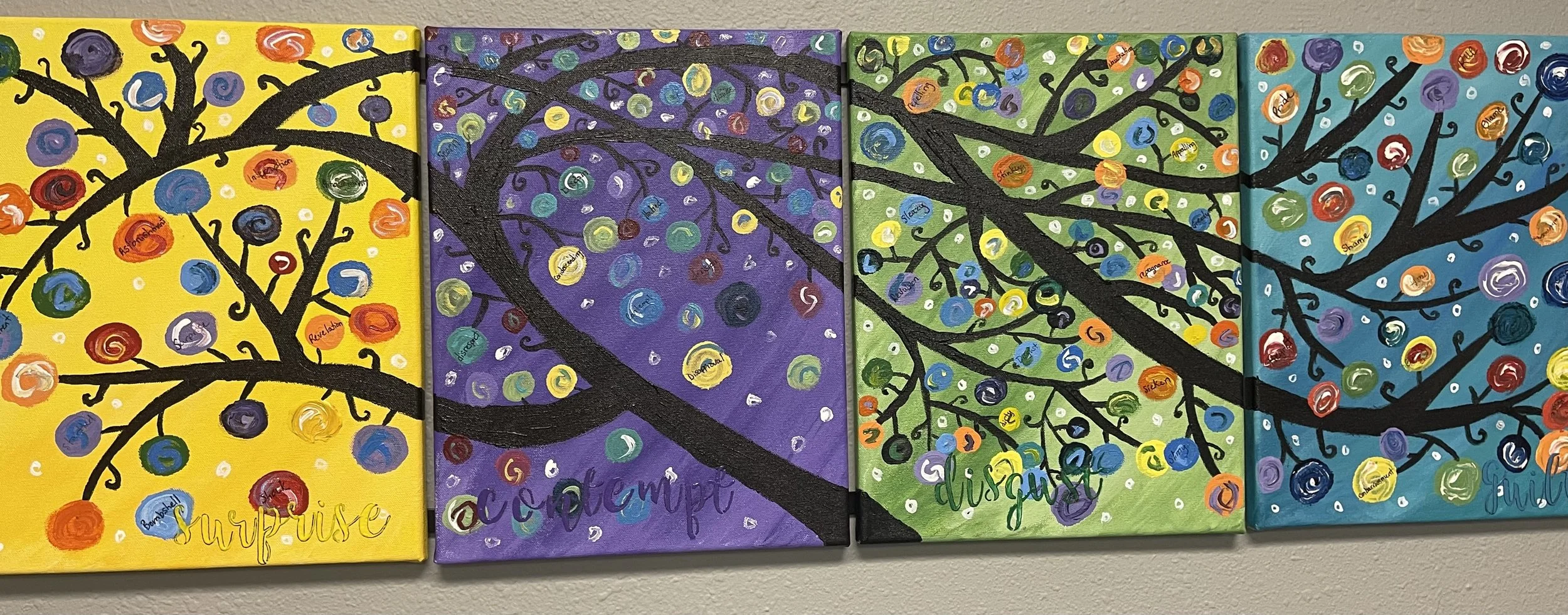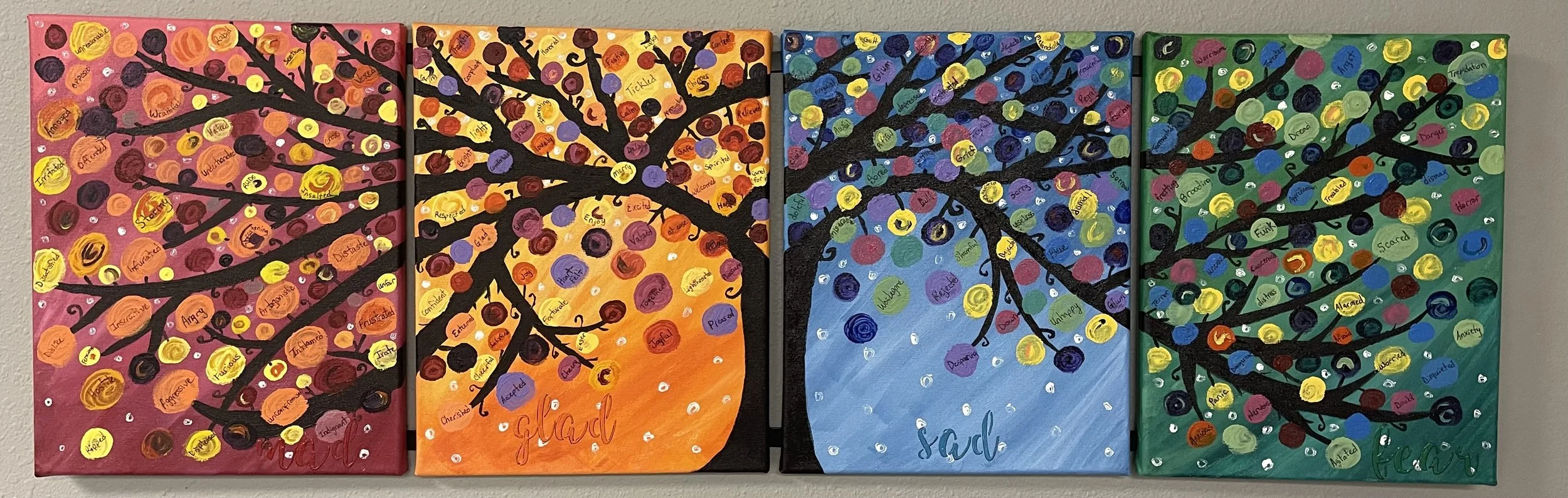 Emotions are a part of every person whether they think they are an emotional person or not. Sometimes self-awareness starts with just knowing the language used to state how they feel about the environment they are experiencing. Once one is able to identify their emotion around a situation they can make change in their behavior when externalizing the feeling. From a distance it just looks like trees, but get up close and the words appear!